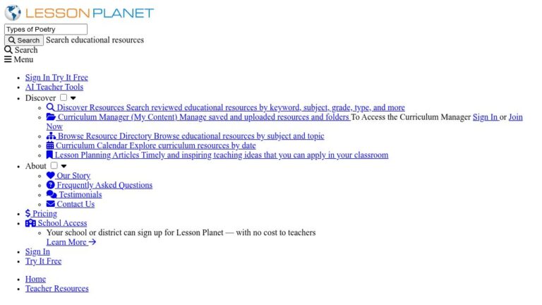 Resource Link: https://www.lessonplanet.com/lesson-plans/types-of-poetry