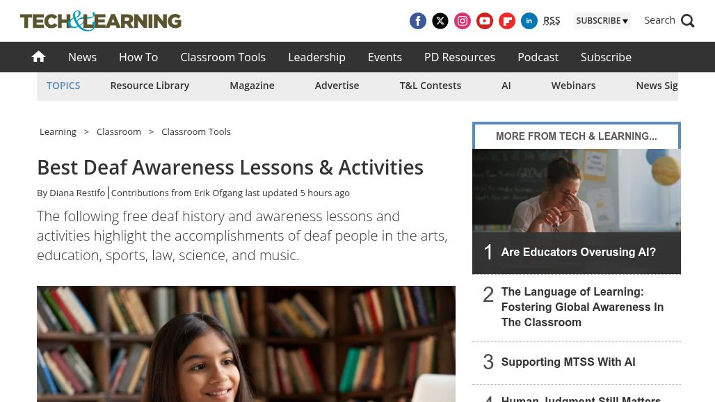 The following free deaf history and awareness lessons and activities highlight the accomplishments of deaf people in the arts, education, sports, law, science, and music. By Diana Restifo Contributions from…  learn more