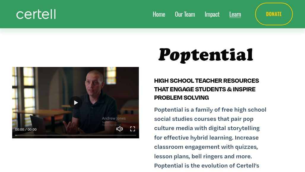 HIGH SCHOOL TEACHER RESOURCES THAT ENGAGE STUDENTS & INSPIRE PROBLEM SOLVING Poptential is a family of free high school social studies courses that pair pop culture media with… learn more